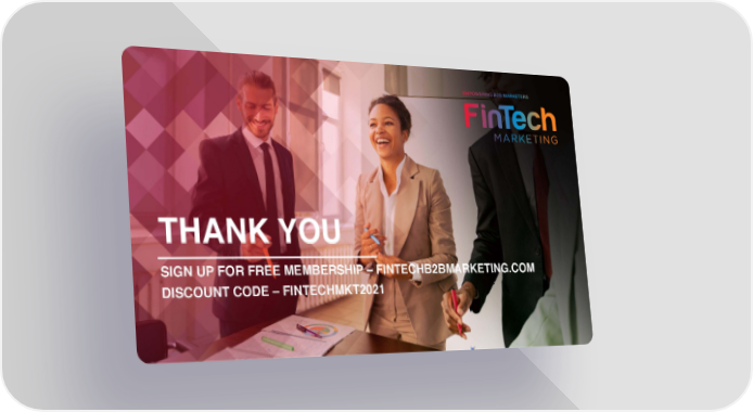THANK YOU SIGN UP FOR FREE MEMBERSHIP –FINTECHB2BMARKETING.COM DISCOUNT CODE –FINTECHMKT2021